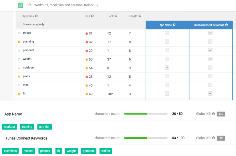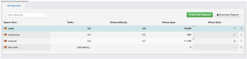 This is just keyword frequency. If you want more information like the competitive level of each keyword, evaluating its score well or badly, following the keyword daily, find out which keywords the adversary is using, to be suggested keywords or keyword services, you should refer to the ASO service pages below: